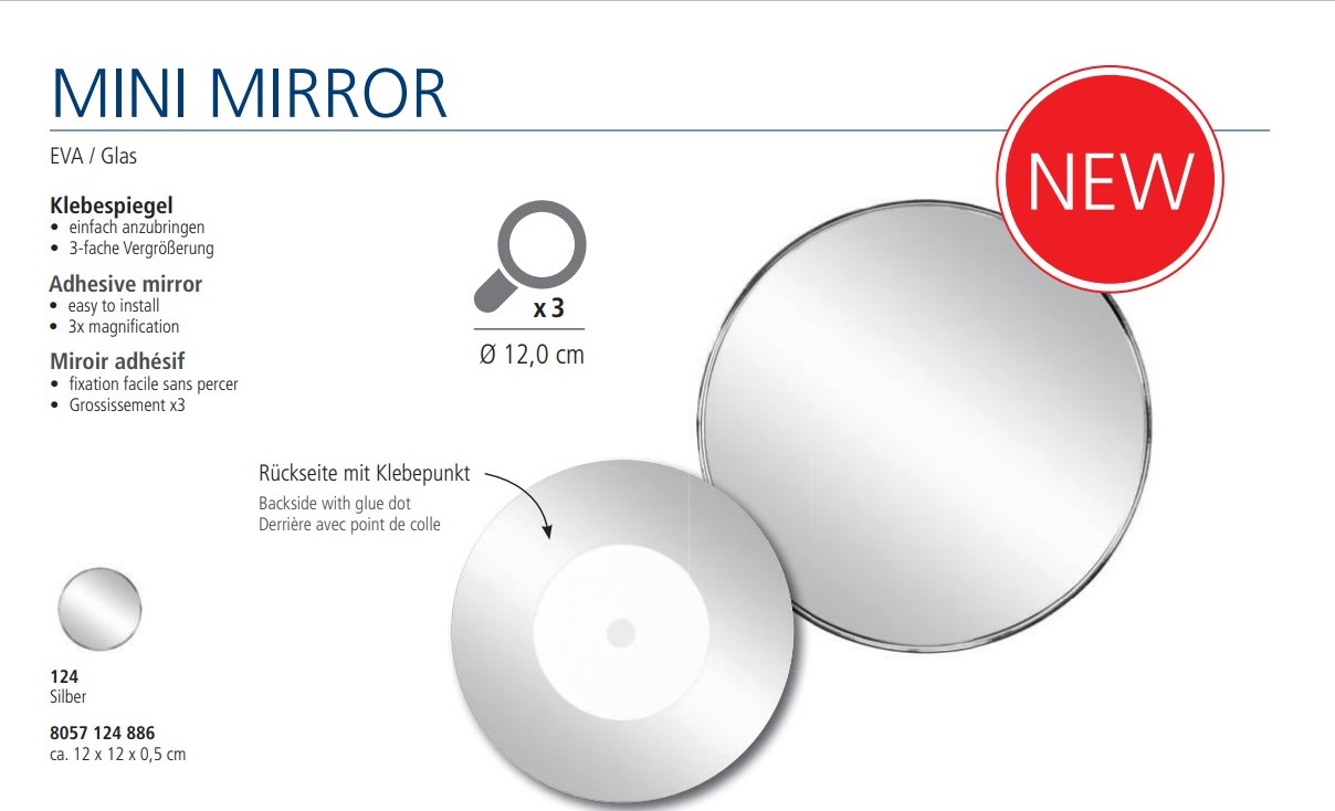 Ο καθρέφτης "Mini Mirror" από την Kleine Wolke είναι ένα πρακτικό αξεσουάρ για κάθε μπάνιο και μπορεί να κολλήσει οπουδήποτε γρήγορα και εύκολα.