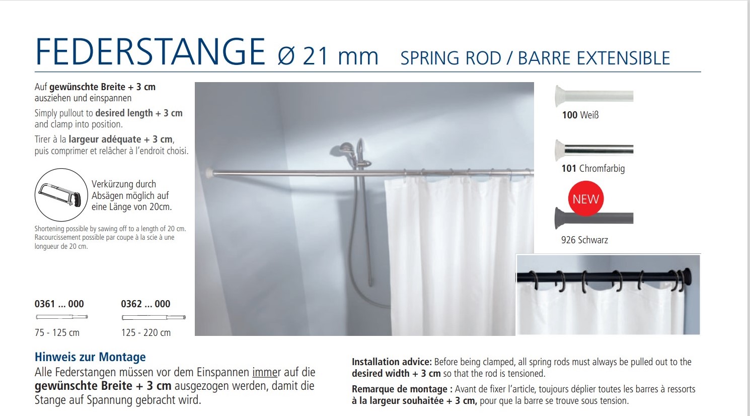 Βραχίονας με ρυθμιζόμενο μήκος από 75-125 cm ή 125-250 cm