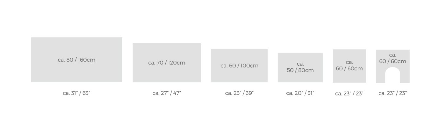 Διατίθεται σε 60 χρώματα και στις παρακάτω διαστάσεις :