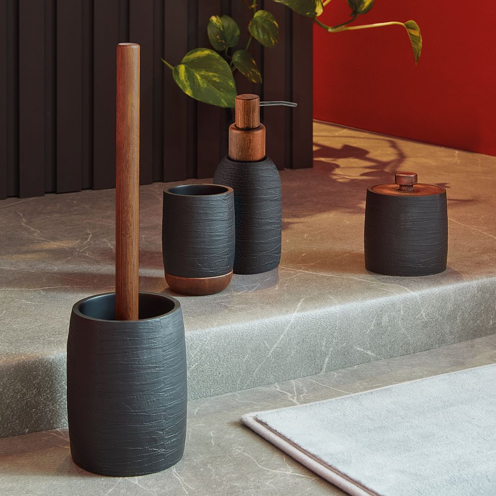 Αξεσουάρ μπάνιου Harper του Kleine Wolke, κατασκευασμένο από συνθετική ρητίνη και ξύλο μπαμπού.Κορυφαία ποιότητα κατασκευής από έναν από τους καλύτερους κατασκευαστές ειδών μπάνιου στον κόσμο.