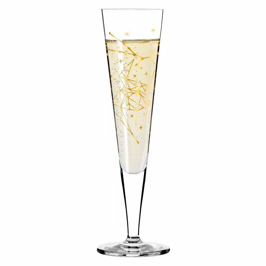 Κομψό ποτήρι σαμπάνιας με διακοσμητικά στοιχεία από πραγματικό χρυσό