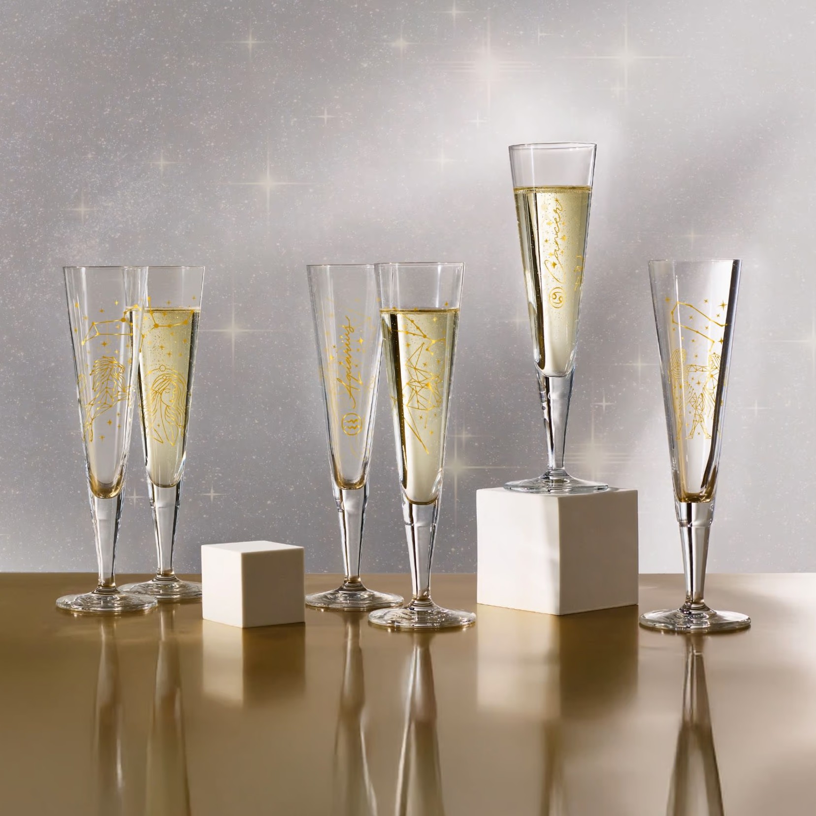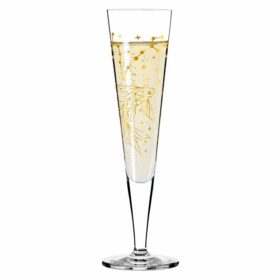 Κομψό ποτήρι σαμπάνιας με διακοσμητικά στοιχεία από πραγματικό χρυσό