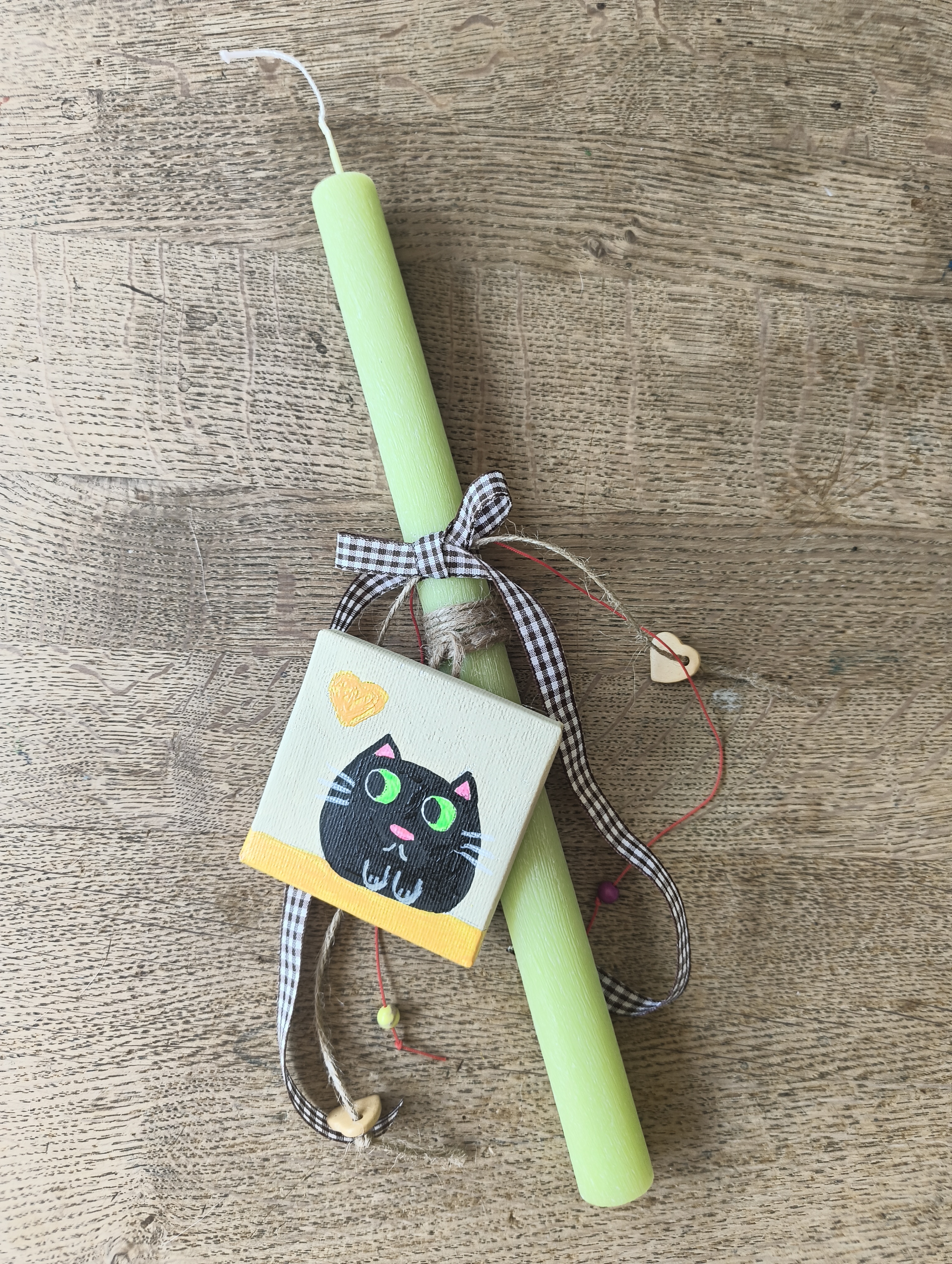 Χειροποίητη Λαμπάδα με καδράκι ζωγραφισμένο στο χέρι , το οποίο μπορεί να χρησιμοποιηθεί ως διακοσμητικό.